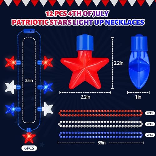 12Pcs 4th of July Necklace Accessories 7 Bulb Independence Day 4th of July Light Up Stars Very well made.