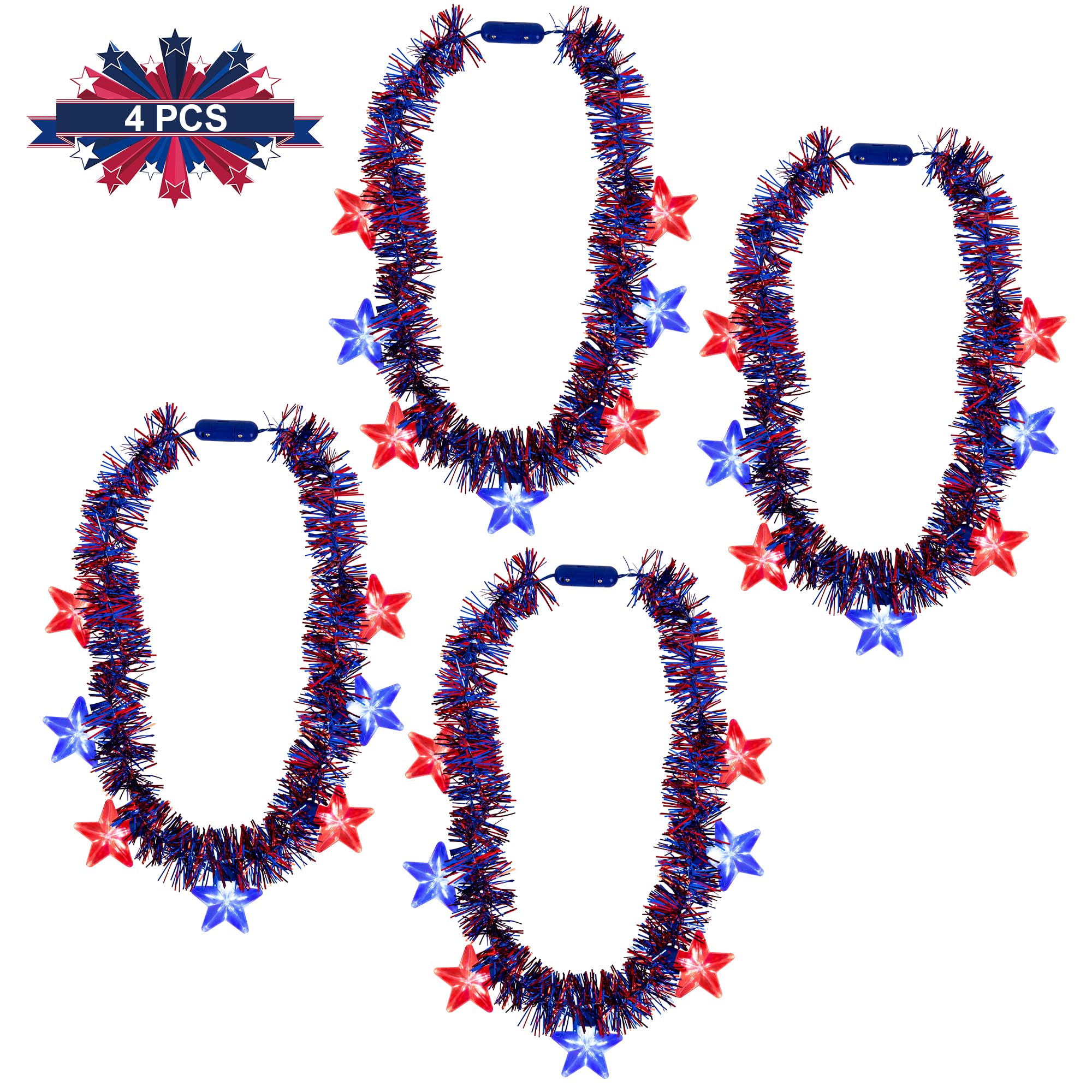 Buy 4th of July Accessories 4PCS Independence Day Light up Necklaces with Tinsel Patriotic Fourth of July 7 Bulb Red Blue Stars Necklace Glow Necklace for 4th of July Day Parades Party Very well made.