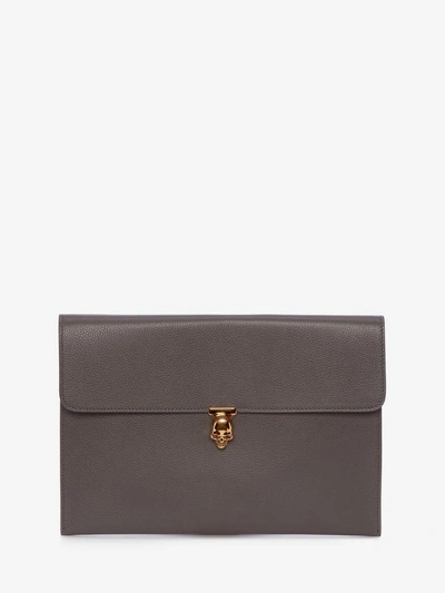 Alexander McQueen Metallic Skull Closure Envelope Clutch Grey Very well made.