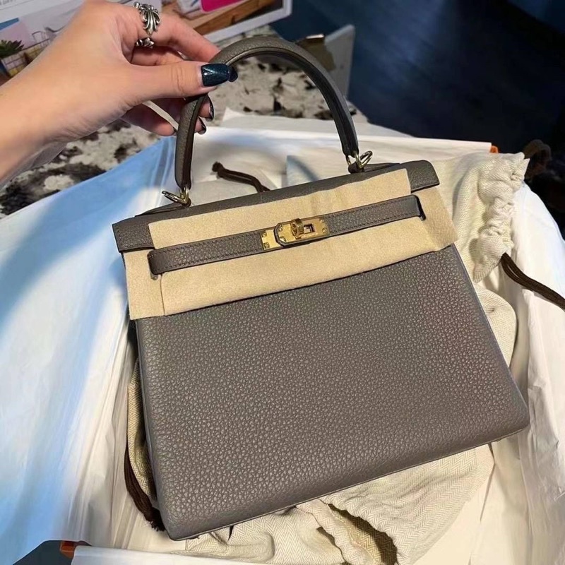 Angel Birkin Hermes Kelly 25cm Togo 8F Etain Full Handmade Very well made.
