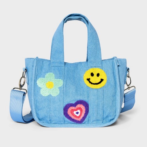 Girls Mini Crossbody Bag Tote with Denim Patches art class Blue Very well made.