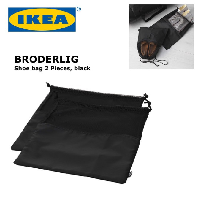 IKEA BRODERLIG Travel Gym Shoe Bag 2 Pieces Black Water proof Very well made.