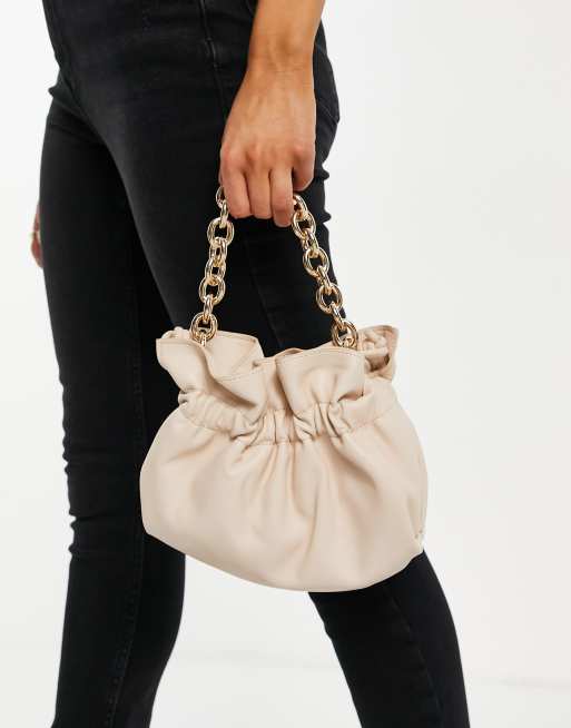 Mango ruched cross body bag with chunky chain dual strap in ecru Very well made.