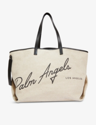 PALM ANGELS Logo print cotton and linen blend tote bag Very well made.