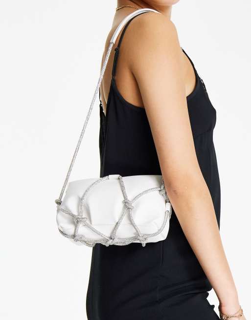 ASOS DESIGN shoulder bag with diamante strapping detail in white Very well made.