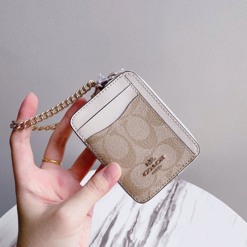COACH Zip Card Case In Signature Canvas Brown Black C0058 LussoCitta Very well made.