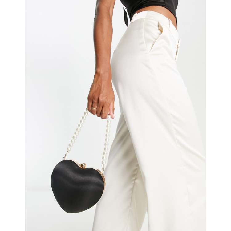 True Decadence heart clutch bag in black satin with faux pearl handle Very well made.