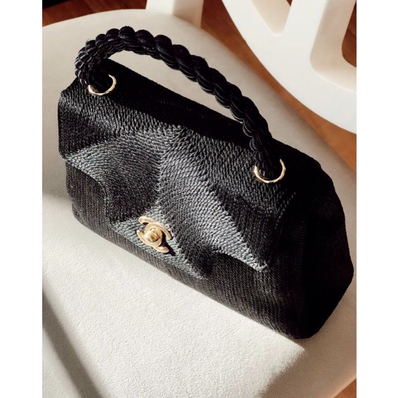 CHANEL VINTAGE BLACK ROPE DESIGN TOP HANDLE MIN Very well made.