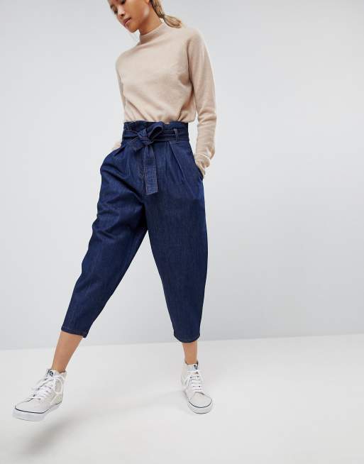ASOS DESIGN paper bag waist boyfriend jeans with belt Very well made.