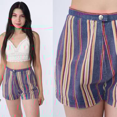 Vintage 60 s Red White Blue Striped Shorts Cotton High Waisted Bottle of Bread Baltimore MD Very well made.