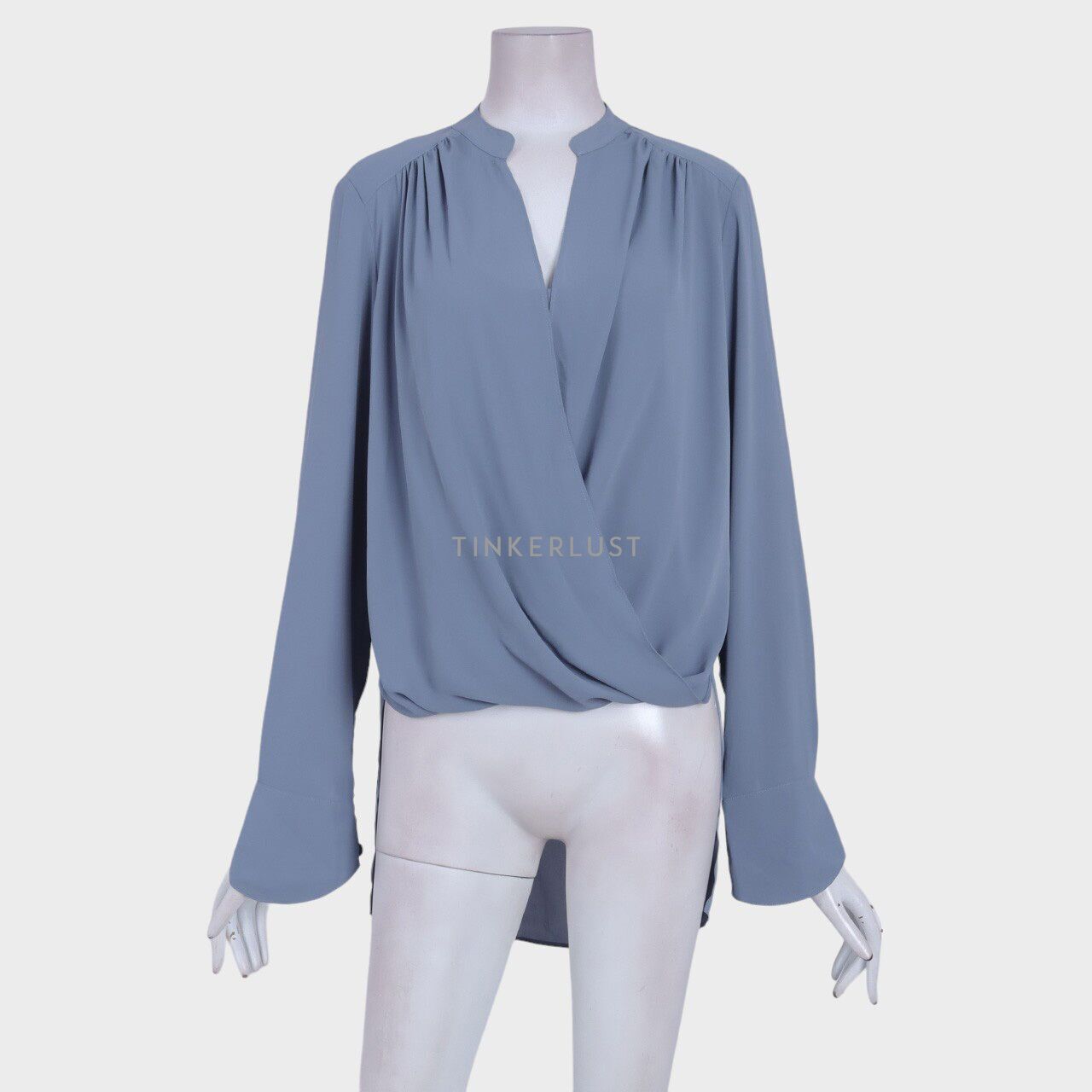 pakaian atasan blouse Bcbg Max Azria Blue Jaklyn Draped Front Blouse Tinkerlust Very well made.