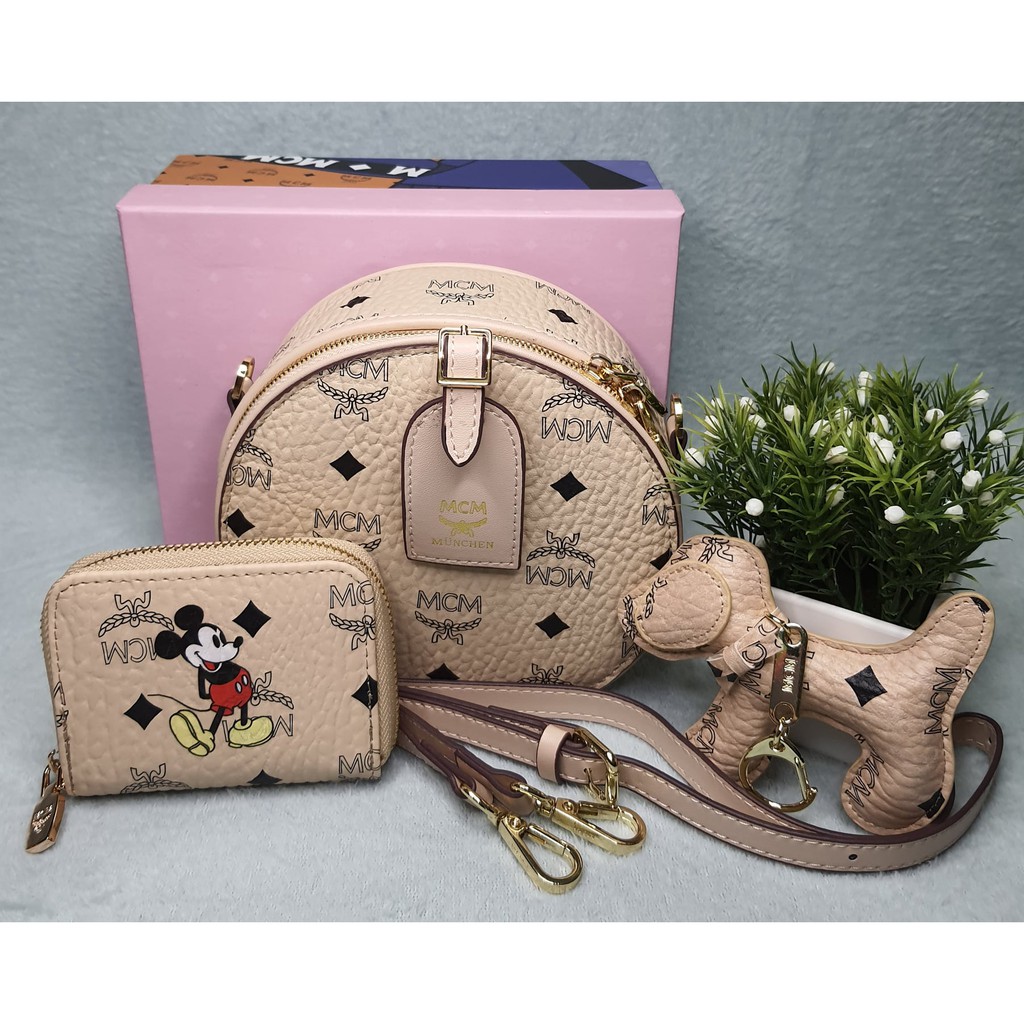 Insifinity Round Sling Bag with Wallet and Dog Key Chain Cute Cream Very well made.