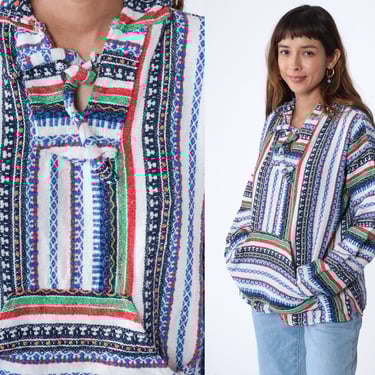 Baja Hoodie 90s Mexican White Striped Drug Rug Sweatshirt Hippie Shop Exile Tucson AZ Very well made.