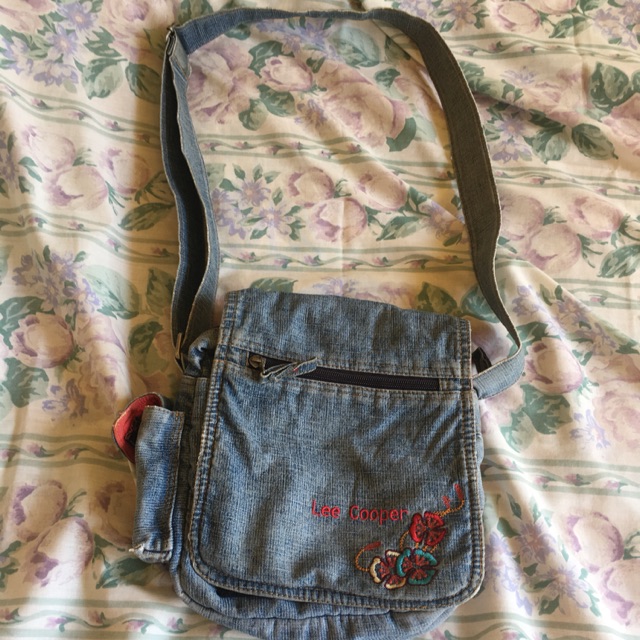 Lee Cooper Denim Brown Messenger Medium Crossbody Bag Wide Strap Studs Very well made.