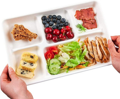 Hacaroa 50 Pack 5 Compartment Paper Plates Natural Bagasse Plates School Lunch Trays Rectangular Dinner Plates for Party Picnic Eco Friendly Very well made.