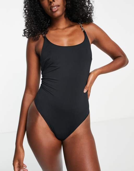ASOS DESIGN Maillot 1 pi ce bretelles et cha ne Noir ASOS Very well made.