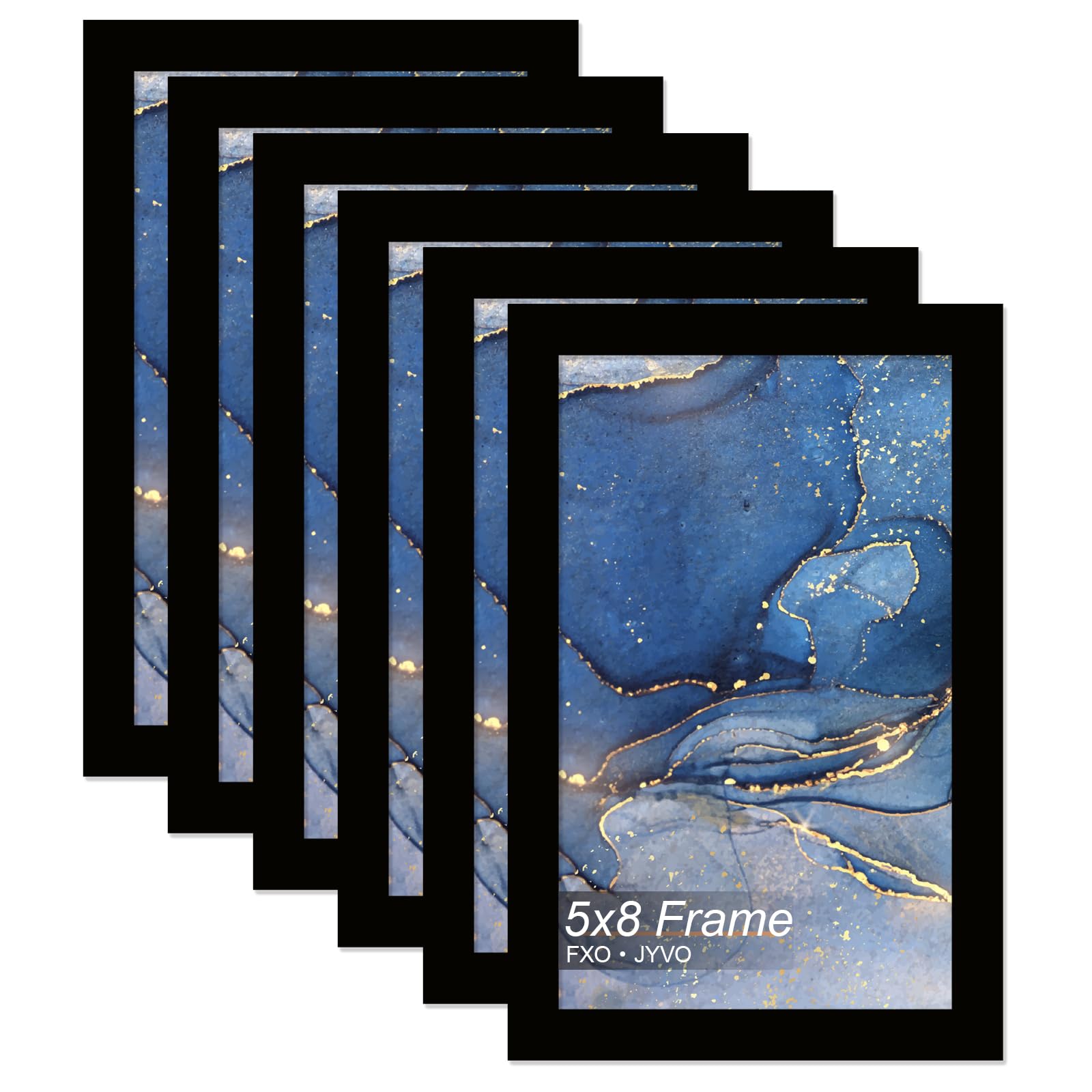 Fxojyvo 5x8 Picture Frame Set of 6 Black Frame for 5 x 8 Inch Picture Poster Photo Light Weight and High Transparent 5 by 8 Frame for Wall 6 Very well made.