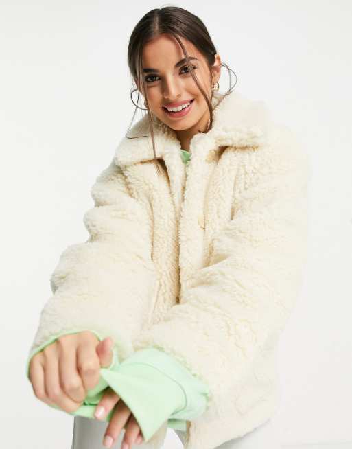 Veste Col Classique Effet Peau De Mouton Beige Femme Veste La Very well made.