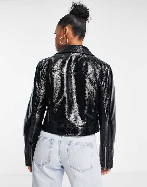 Veste droite avec d tails vinyle noir femme Morgan Very well made.
