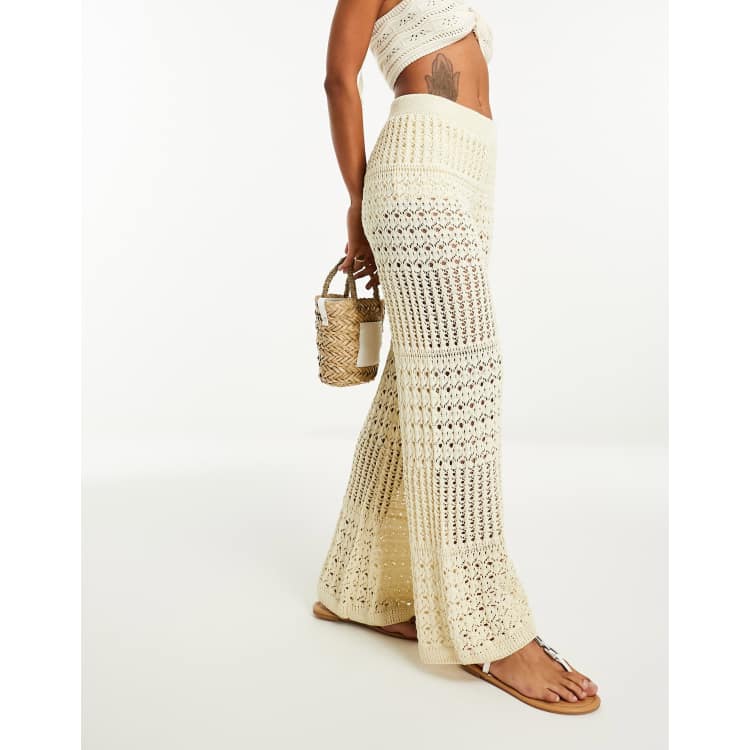 Mango wide leg crochet beach trousers in light beige ASOS Very well made.