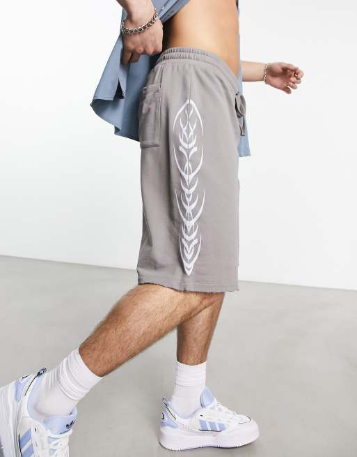 ASOS DESIGN oversized basketball shorts in gray with side print and nibbling Very well made.