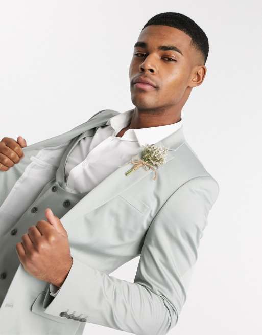ASOS DESIGN wedding super skinny suit jacket in pastel green Very well made.