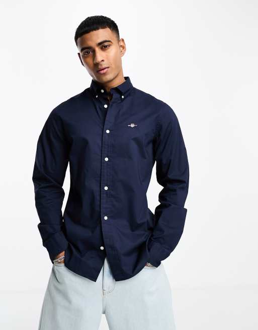 Gant Chemise ajust e en popeline logo embl matique Bleu Very well made.