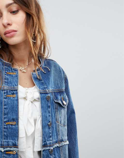 Current Air Veste en jean sans col avec d tail piercing ASOS Very well made.