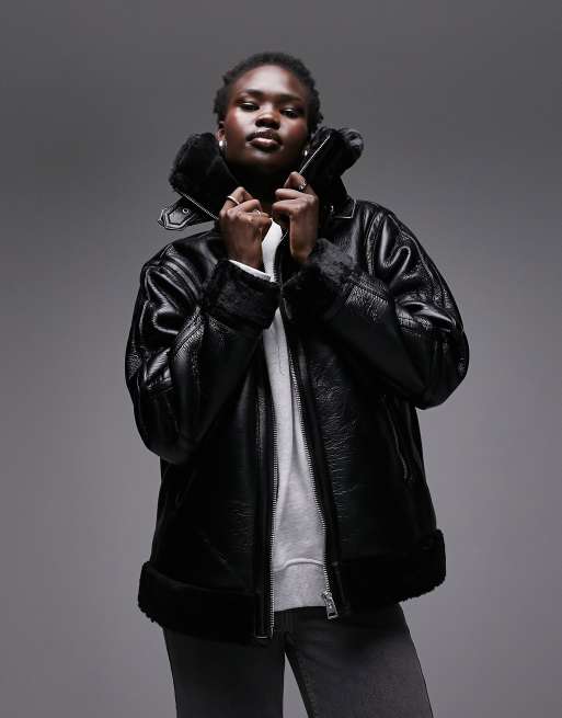 Topshop Tall Blouson aviateur oversize zipp en similicuir et Very well made.