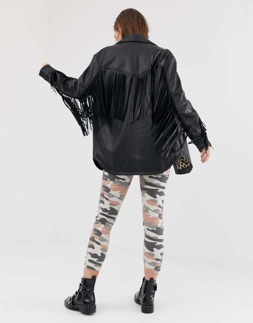 Bershka Veste en imitation cuir style western avec franges Very well made.