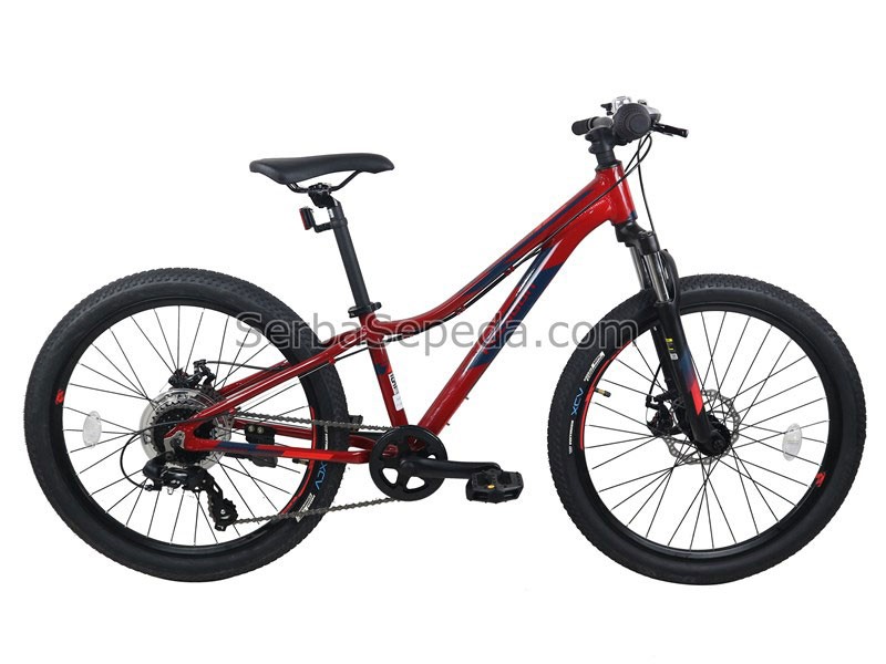 Kids love the New look of the Relic 24 Polygon Relic 24 features a trail bike inspired Alutech frame mechanical disc brakes front and rear 8 speed Shimano drivetrain 60mm travel Very well made.