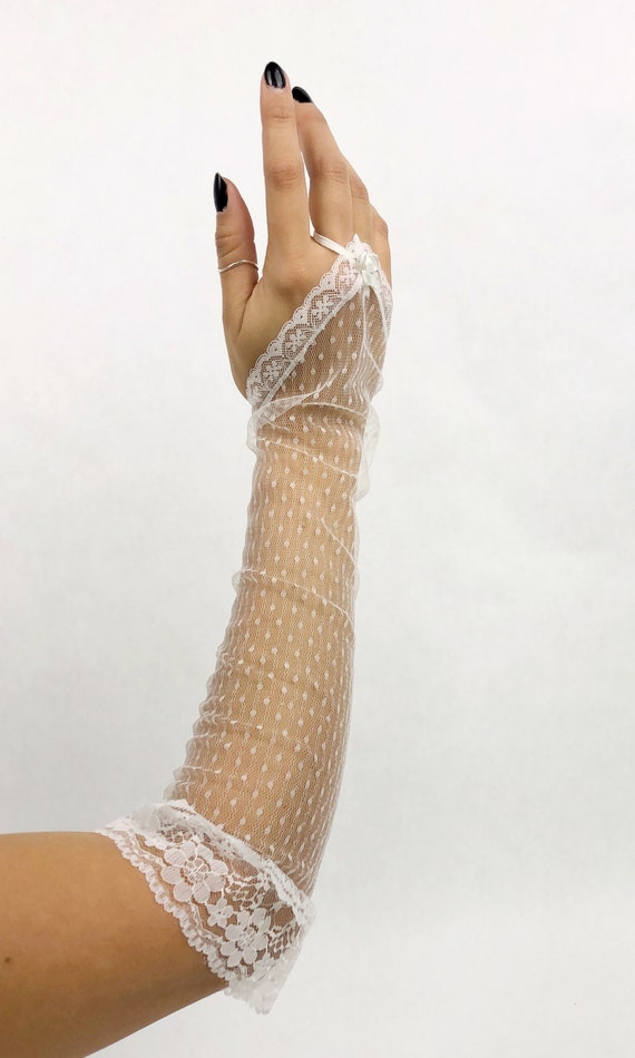 Vintage 1980 s Polka Dot White Lace Fingerless Gloves 80 s Bridal Gloves Victorian Gloves 80s Does 50s Vintage Wedding Gloves Very well made.