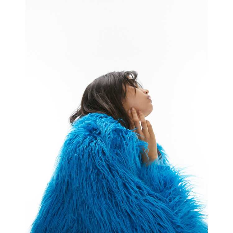 Topshop Veste courte en fausse fourrure poils longs Bleu vif Very well made.