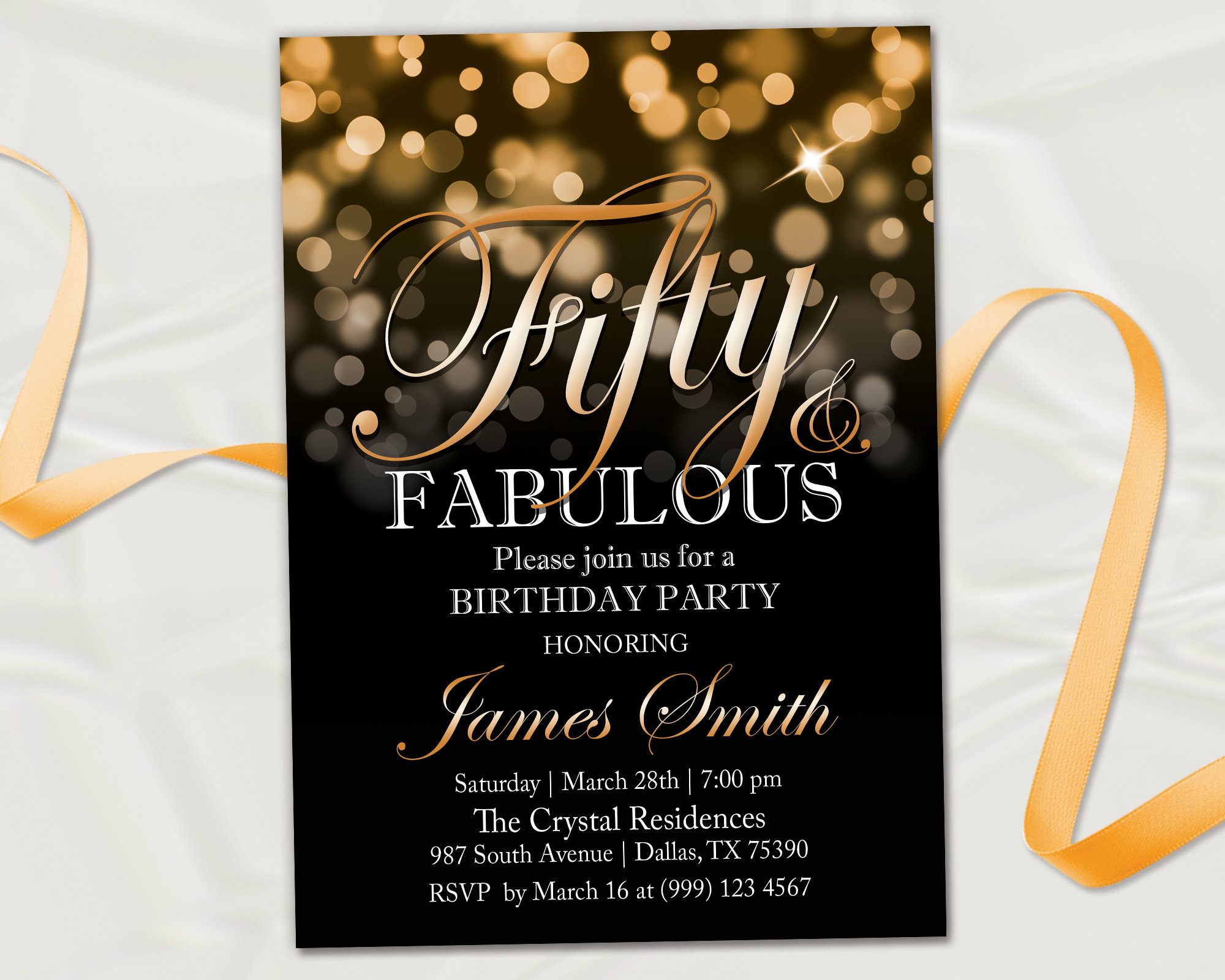 50 and Fabulous Bokeh Invitation Fifty and Fabulous Invite Elegant Birthday Invite Modern 50th Birthday Celebration Under the Stars Invite Very well made.