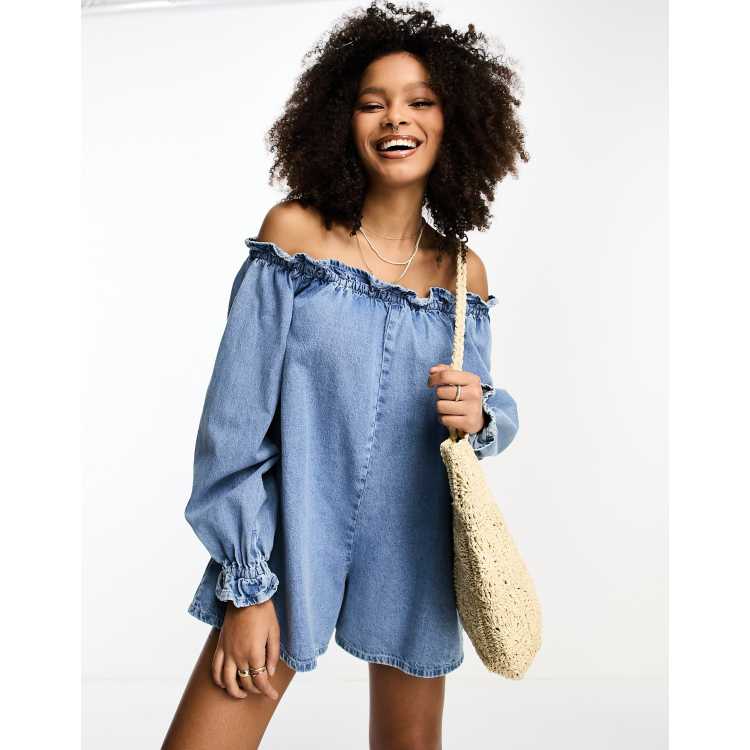 ASOS DESIGN Combishort paules d nud es en denim souple Bleu Very well made.