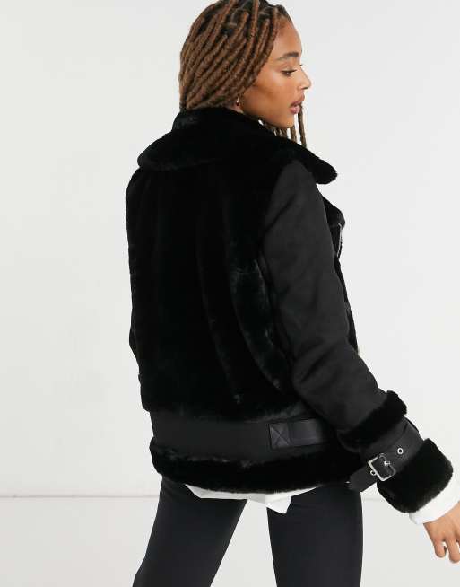 Morgan Blouson style motard oversize en fausse fourrure Noir Very well made.