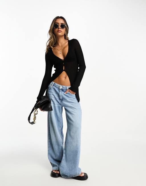 ASOS DESIGN Gilet long avec d tail boutonn l avant Noir transparent Very well made.