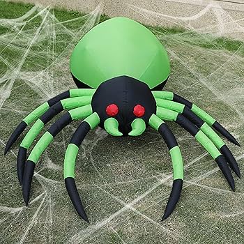 Prsildan Halloween Inflatable Spider 6 Ft Blow up Decoration with Colorful LED Lights and Red Glowing Eyes for Outdoor Indoor Garden Lawn Yard Green Amazon Home Kitchen Very well made.