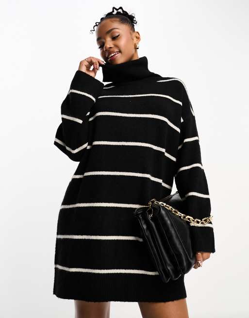Pull Bear knitted roll neck jumper dress in black stripe ASOS Very well made.