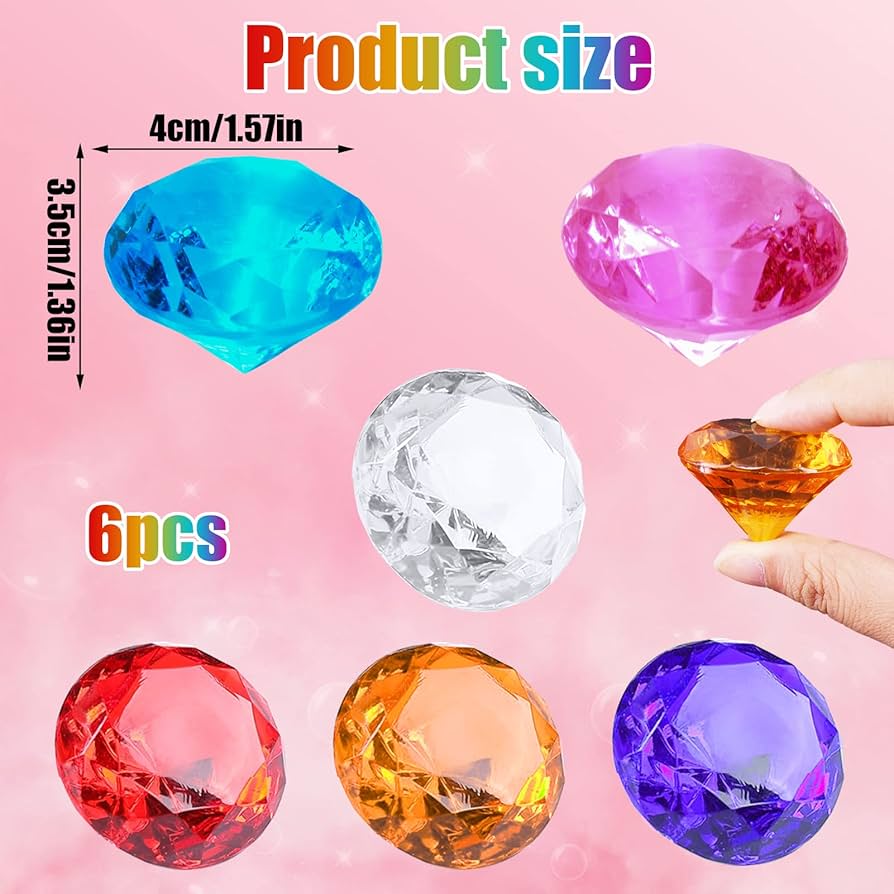 6 Pcs Big Size Kids Diamond Toy Acrylic Diamond Gems Jewels Large Pirate Treasure Chest Hunt Toy Fake Plastic Children Crystals for Crafts Party Very well made.