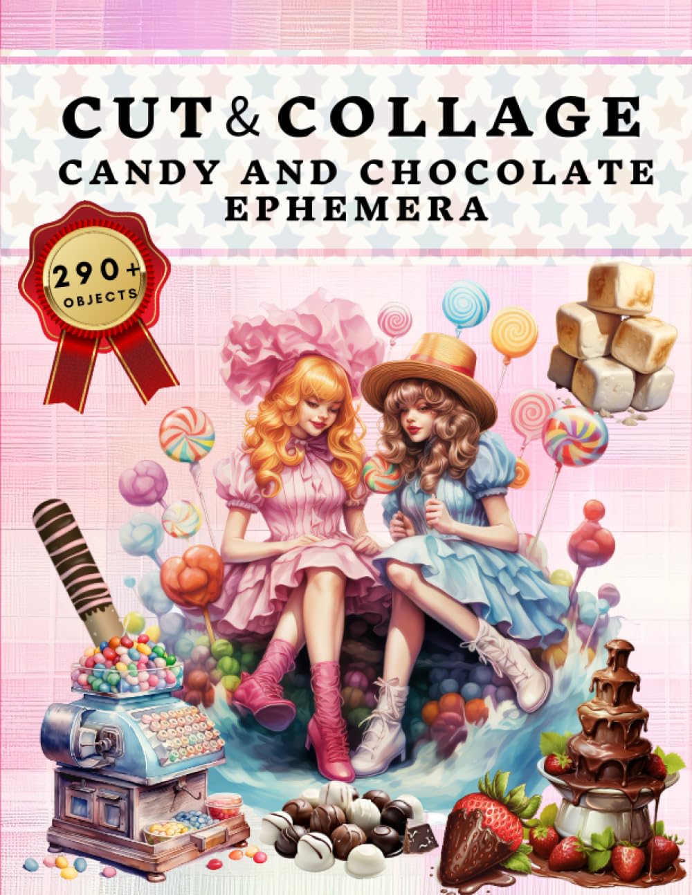 Cut and Collage Candy and Chocolate Ephemera Book High Quality Images Of Lollipop and Dessert For Paper Crafts Scrapbooking Mixed Media Junk Art Artist Trading Cards and More. Amazon Curry Kate Very well made.
