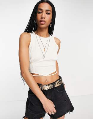Bershka bust seam crop top with wrap around detail in cream ASOS Very well made.