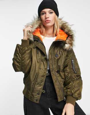 Bershka Bomber capuche en fausse fourrure Kaki Very well made.