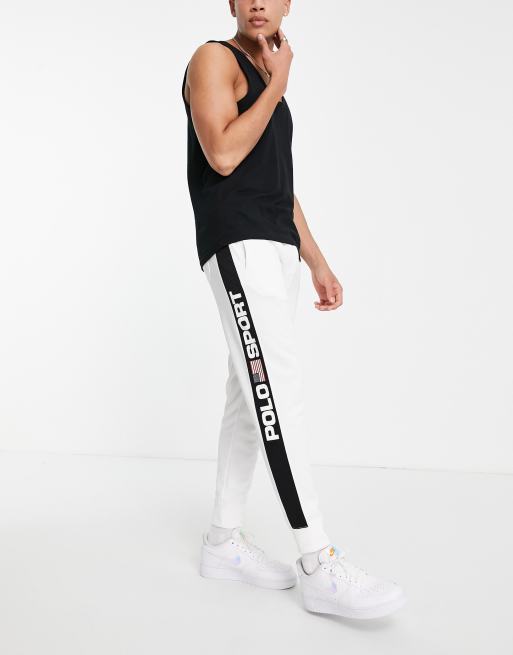 Polo Ralph Lauren Sport capsule retro flag logo taping tricot track joggers in white Very well made.