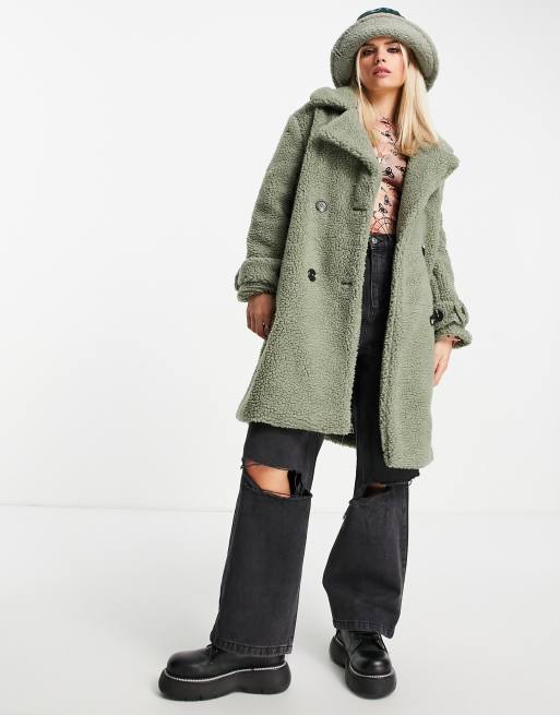 Plus Manteau Mi long En Faux mouton Vert Sauge PrettyLittleThing Very well made.