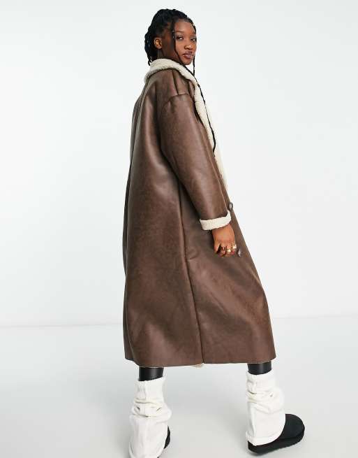 Stradivarius STR Manteau aviateur imitation cuir avec doublure contrastante imitation peau de mouton Marron Very well made.