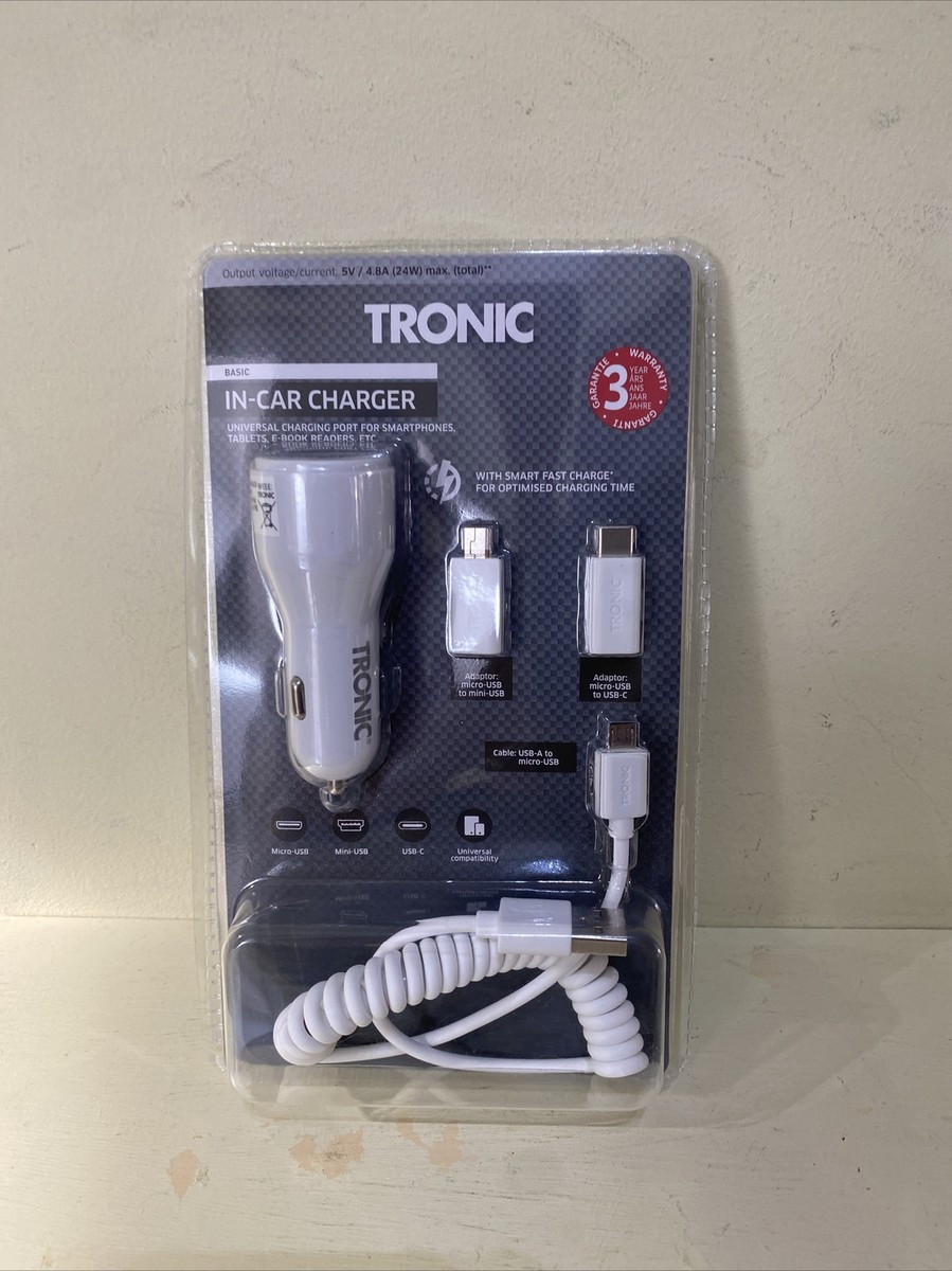 TRONIC Smart Fast Charge Basic In Car Charger White 3 Adaptors Very well made.