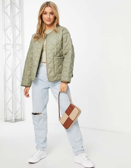 Pull Bear quilted coat with pockets in khaki Very well made.