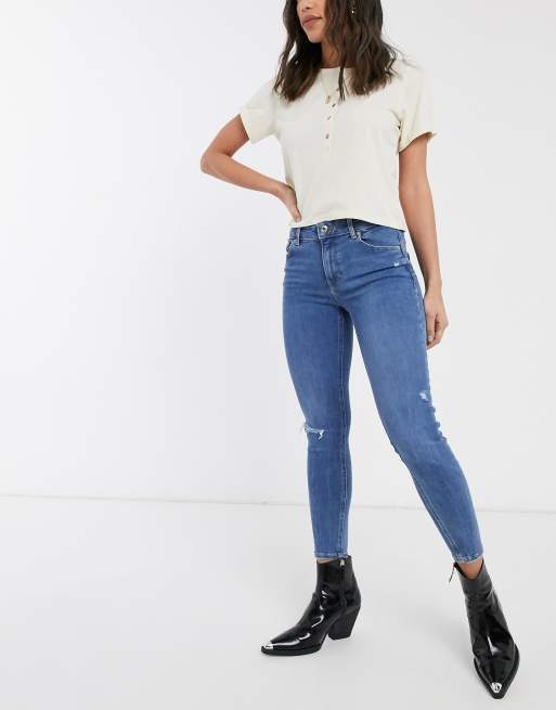 Bershka skinny push up jean in mid blue with knee rip Very well made.