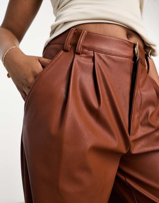 ASOS DESIGN faux leather barrel leg pants in brown Very well made.